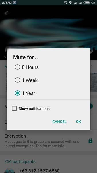 Pusing banyak notifikasi yang masuk terus menerus? Biasanya ini terjadi pada chat di group WhatsApp, di mana ada banyak orang yang chatting di sana. Terlebih lagi kalau kita bergabung dengan banyak group tentu ini bisa mengganggu ketenangan kita.Mungkin keluar dari group adalah solusinya, namun tentu kita merasa tidak enak hati apabila keluar dari group karena banyak kenalan. Jadi, solusi terbaik untuk masalah ini adalah men-silent-kan group tersebut. Jadi, kita tidak akan menerima notifikasi apabila ada chat group masuk, namun kita tetap ada di dalam group dan bisa membaca chat kok, hanya notifikasinya saja yang dihilangkan agar tidak mengganggu.
